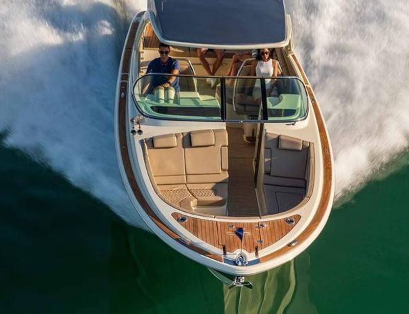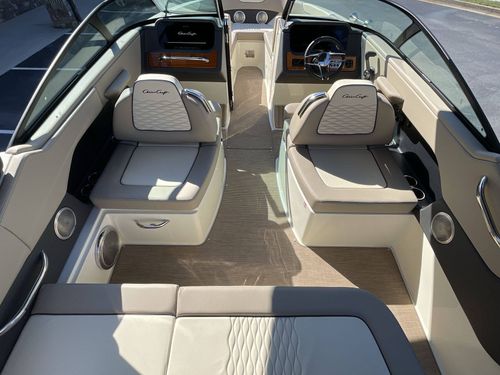 The Chris Craft 25 Sportster offers an experience beyond typical boating, emphasizing comfort and satisfaction with its plush seating, generous storage, and high-end onboard conveniences. With sumptuous upholstery, intricate detailing, and a state-of-the-art sound system, prepare for a redefined meaning of luxury boating.