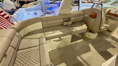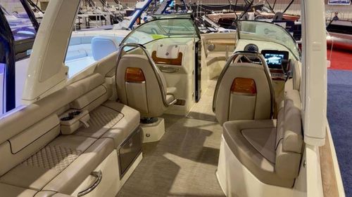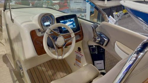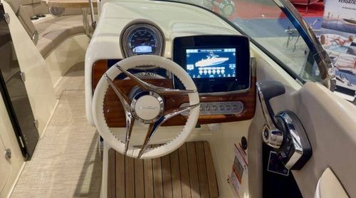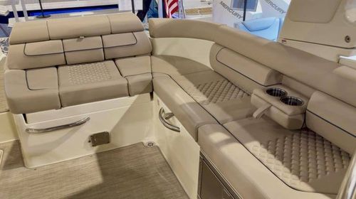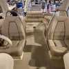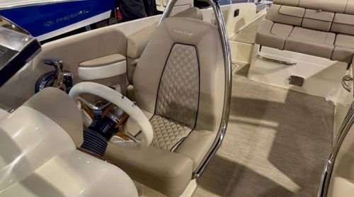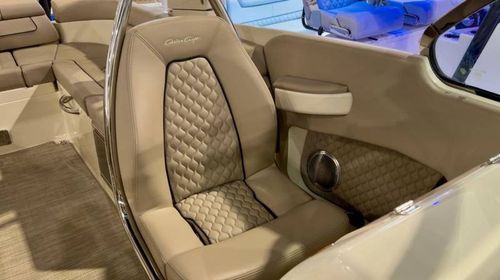 A wide captain’s chair puts you in control behind gleaming gauges and a rich, mahogany steering wheel. The luxurious wave-pattern stitching is complemented by a thick stainless steel bar. And a thigh bolster brings added height and visibility.