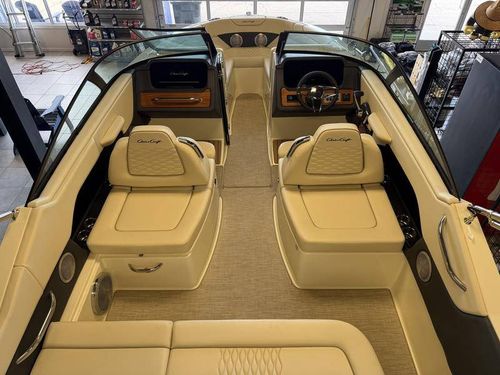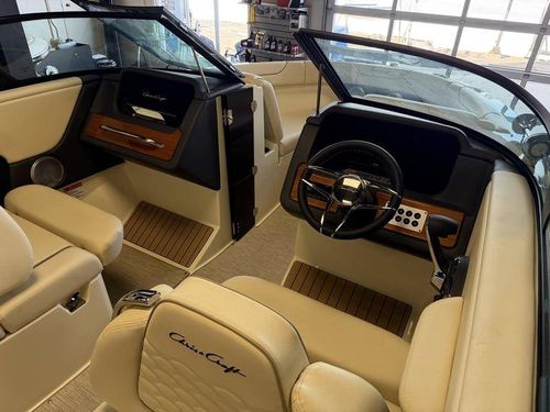 This 25-foot bowrider captures Chris-Craft’s unmistakable heritage with elegant lines, premium teak accents, and hand-stitched upholstery, while delivering the power and handling today’s boaters demand. Whether you’re cruising the lake, entertaining friends, or enjoying watersports with the family, the Sportster 25 offers a smooth, confident ride and thoughtful design throughout.