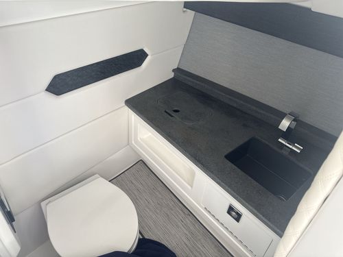 - GLASS COCKPIT,DUAL GARMIN 12" DISPLAYS HARMAN KARDON AUDIO W/TRANS SPKRS-H/TOP CALIFORNIA REQUIREMENTS(REQ CAT ENGINE) HEAD,VAC(THETFORD-10 GALLONS)W/MACERATOR SNACK STAND W/PREP GALLEY WO/FRIDGE(STD) AIR CONDITIONER(HEAD/HELM)