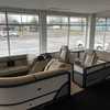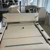 Inside, the layout is designed for maximum comfort and usability, featuring premium soft-touch vinyl upholstery, dual high-back reclining captain’s chairs, wraparound lounge seating, and deep storage throughout. The spacious floorplan provides ample room for family and guests, with a rated capacity of up to 15 passengers, making it perfect for entertaining and social cruising.