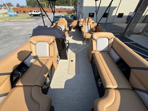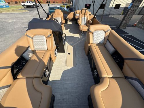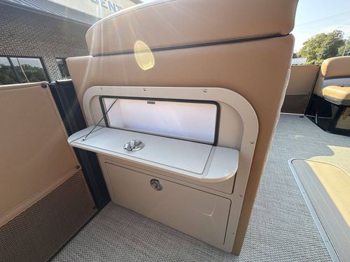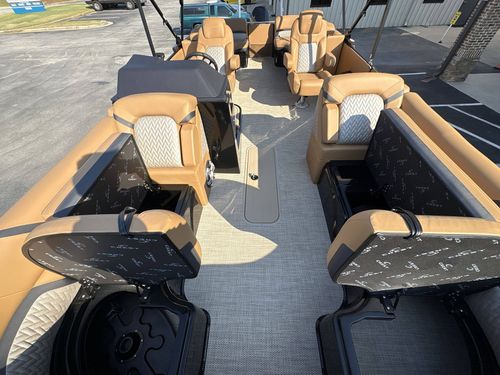 Black Metallic Fence Panel & Steel Gray Accent Panel: This boat features a stunning Black Metallic Fence Panel with complementing Steel Gray Accent Panel for an elegant, modern aesthetic.
