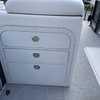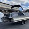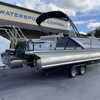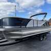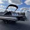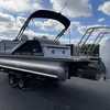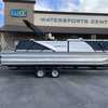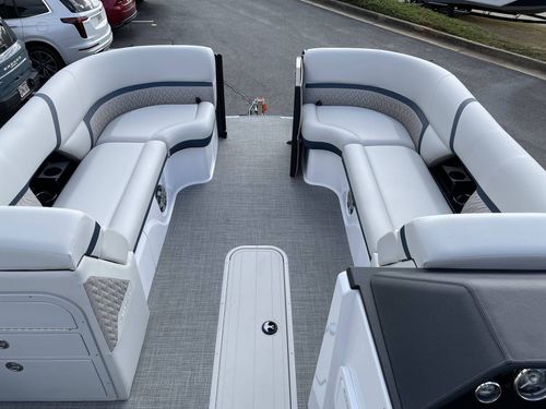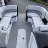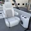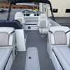 The exterior design flaunts an Admiral Metallic color with Silver Metallic Accent Panel, complemented by Fiberglass Fence Panels in white. The interior, meticulously dressed in Light Gray Interior Vinyl with Admiral Accent Vinyl and White Interior Gelcoat, provides a sophisticated yet comforting ambiance. Furthermore, the SeaGrass - Compass Gun Metal (Gray) floor adds a touch of sophistication.