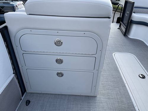 Aboard the Caribbean 230 SLS, you'll find an array of modern conveniences such as Dual Battery with Remote Switch, In Floor Ski Storage and a Mid Ship - 3 Drawer Storage Unit. The Premium Tube & Ski Tow Bar with Flagpole enhances watersport activities while the Helm Chair with Flip Up (2) ensures comfortable navigation.