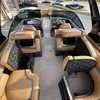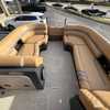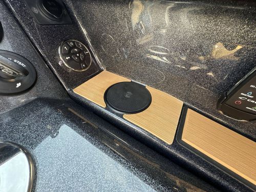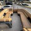 Step inside to a lavish realm of comfort and elegance, adorned with our distinctive Beach Interior Vinyl design. We've enhanced the luxury quotient with the addition of Black Metallic Interior Fiberglass, providing a unique, high-end touch. Furthermore, the boat boasts a SeaGrass - Compass Solar Tan flooring that only adds to its charm and appeal, creating an inviting and opulent interior environment.