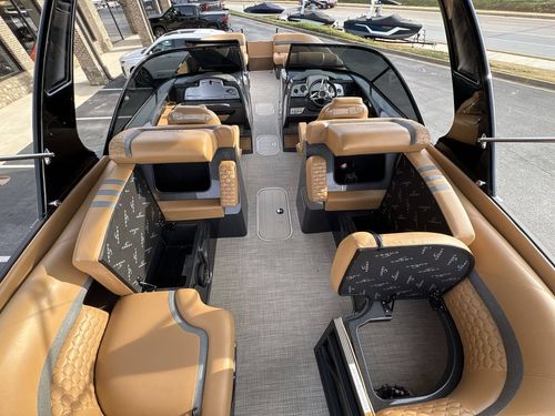 Designed with thoughtful considerations, this boat includes In-Floor Ski Storage, Fender Hangers, a Ski Pylon Tow Bar, and an Ultra Luxury Cladded Arch, all of which improves functionality. A reliable Triple Bank Charger and Triple Trays with a Switch ensure consistent power supply.