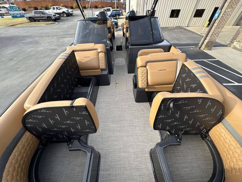 The Continental Limited 260 SLC Twin is well-stocked with amenities combining comfort, luxury, and convenience. Key features include a top-of-the-line audio package with tower speakers for quality entertainment, a 9" Garmin GPS for trouble-free navigation, as well as twin 29" Clad Recliners that offer ultimate lounging comfort. Extras such as a Mid Ship - Doggie Drawer Combo Unit, and a Privacy Curtain with Frame, ensure the privacy and comfort of every passenger.