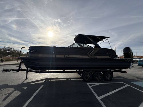 Exterior Design: The exterior of this boat is a testament to luxury and sophistication, donned in a regal Matte Black finish, accented tastefully with Steel details. This 'Black Beauty' is a head-turner with its Powder-Coated Deck Trim and Corner Caps that add a polished, exquisite finish to its overall design.