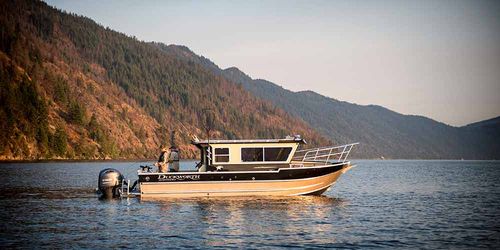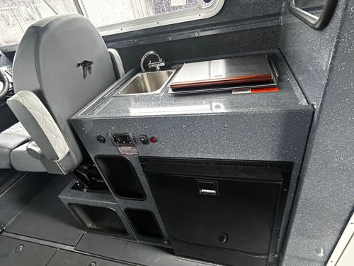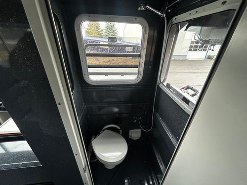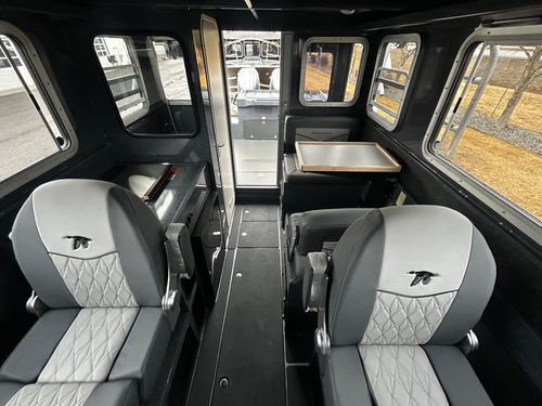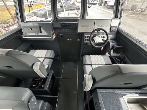A full hardtop with forward-leaning windows shields you from the elements, while the upswept bow and insulated sub-floor fish box speak to its rugged, seaworthy design. Below deck, ample cabin storage and a roomy cuddy with cushions and lights invite relaxation after a day of adventure.