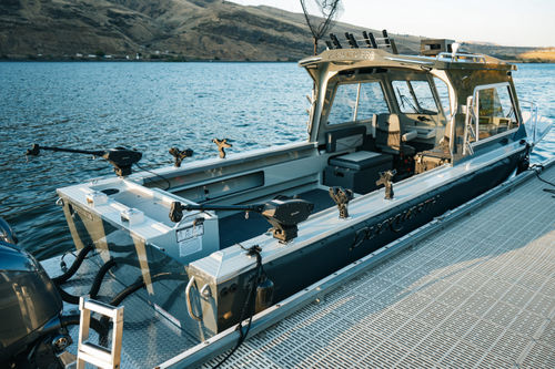 At 29 feet overall, the 26 Pacific Pro features a sharp 32-degree bow deadrise and towering 39.5″ sides, delivering a confident, smooth ride in rough conditions. Whether you choose the steadfast full hardtop or the adaptable Alaskan bulkhead with its lockable door, this vessel is built to go further and fish harder.