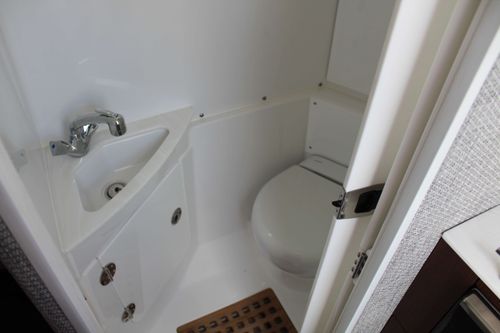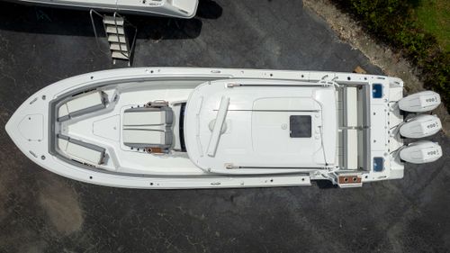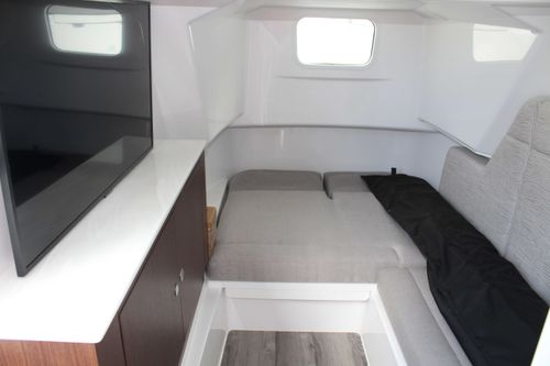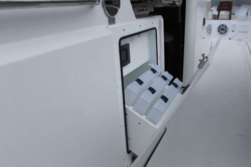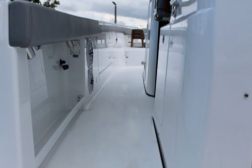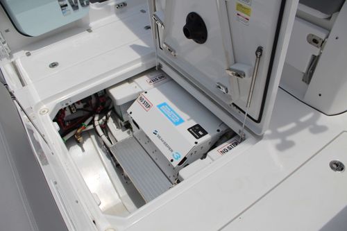 - Packages: Electrical convenience pkg, 8kw generator w/ 20gal diesel tank, air conditioning (cabin, head, helm, mezzanine & helm seat), 5gal water heater, microwave, storage cabinets w/ solid surface & main distribution panel (replaces rod storage in cabin), Dual 110V 30A system, 50' shore power cords, 32" TV
