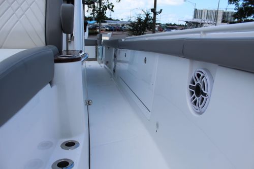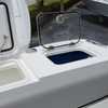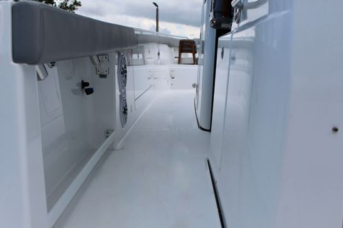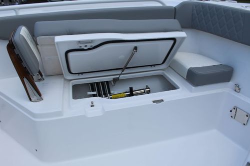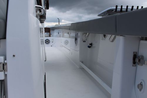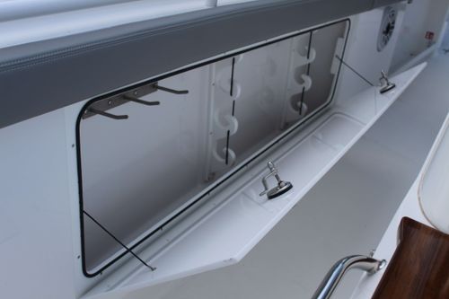 - Fishability: Fishing Package - Gemlux 18ft collapsible, carbon fiber outrigger package with double rigging kit & quick cam cleats, rod holders in forward console (6), removable fillet table with storage
