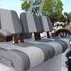 - Helm Seat Upgrade - Release teak ladder back helm seat pkg (3) with sliders. Replaces triple Pompanette helm seats