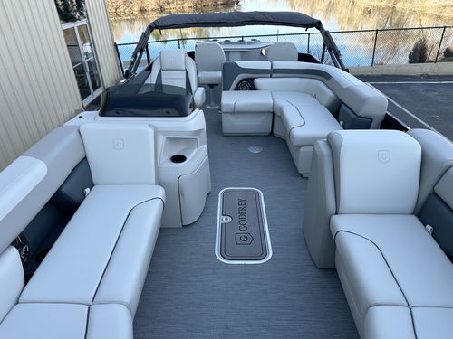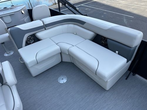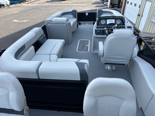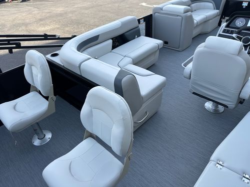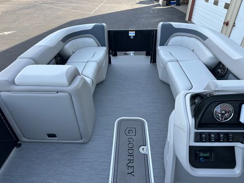 The 2026 Godfrey 2286 FSSE maintains a balance between luxury and functionality with an ergonomic layout and top-tier amenities. It features several storage spaces for your belongings, quality upholstery for maximum comfort, and a user-friendly dashboard that provides easy control of the boat's features and settings.