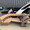 The interior design is a sleek combination of elegance and ergonomic consideration. Spacious, comfy seats promise fatigue-free journeys for your guests while the helm station features user-friendly navigation devices for the captain. This watercraft is also highlighted by luxury features such as a high-quality sound system and built-in coolers.