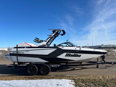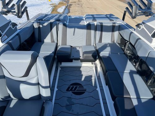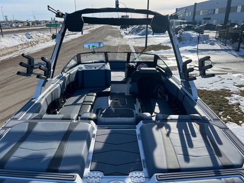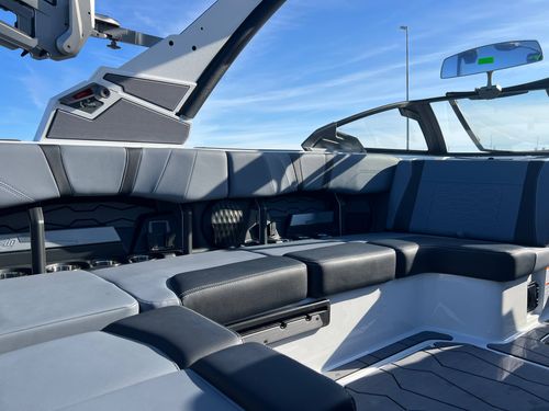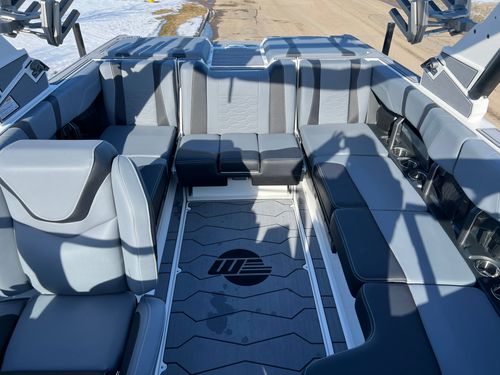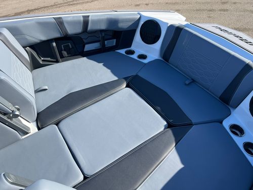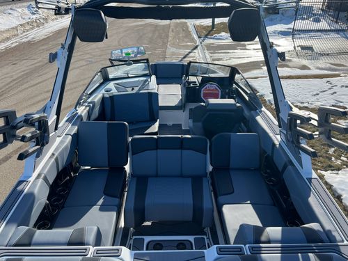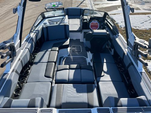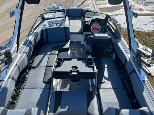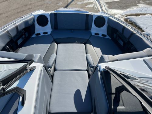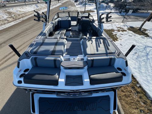 The Malibu Wakesetter 23 MXZ combines style, performance, and technology to create one of the most popular pickle-fork boats on the market. Built for the crew that demands pro-level wakes and waves behind the boat and next-level luxury inside, the 23 MXZ features an expansive pickle-fork bow and ultra-plush cockpit lounge with flexible, ergonomic seating to accommodate your crew of 16. And, with Malibu's signature wake-making features, you can create the perfect wake or wave for any rider — whether it's mellow for skim-style tricks or aggressive for surf-style airs off of the lip and advanced wakeboarding tricks.