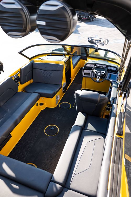 Adorned with a sleek and modern design, this boat stands out in terms of aesthetics. It is built with durable materials of superior quality guaranteeing long-term use. The spacious and elegantly designed deck adds an extra touch of sophistication.