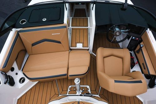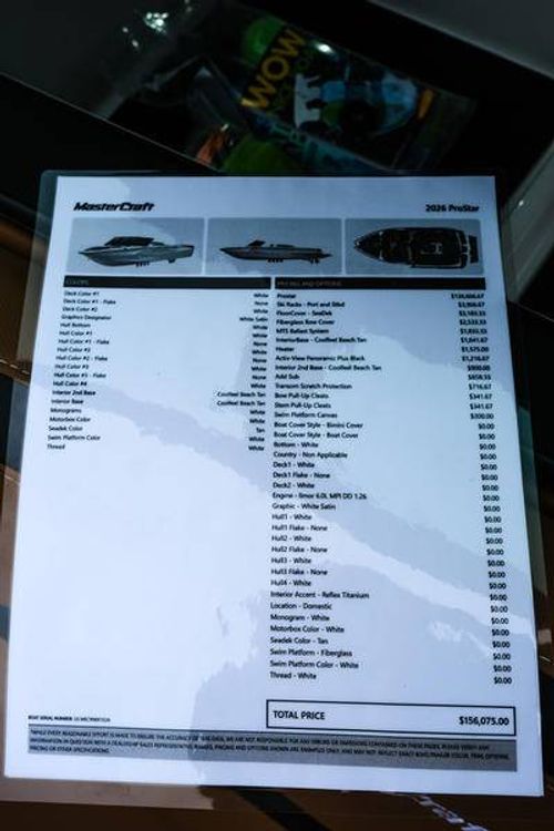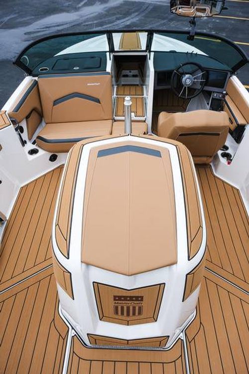 The 2026 MasterCraft ProStar continues its legacy as the benchmark in three-event ski performance while delivering luxury comfort and timeless design. This build is finished in a clean all-white hull and deck paired with Coolfeel Beach Tan interior and Reflex Titanium accents for a modern yet classic look. Powered by the Ilmor 6.0L MPI, the ProStar delivers world-class pulls, perfectly balanced wakes, and the precision demanded by serious skiers. This ProStar is equipped with SeaDek flooring, ZeroOff three-event speed control, the MTS ballast system, and MasterCraft’s premium soundstage with subwoofer. Added comfort features include a heater, fiberglass bow and swim platform covers, and the Activ-View Panoramic Plus mirror. Practical touches like transom scratch protection, dual ski racks, and bow and stern pull-up cleats enhance both performance and usability. A matching ProStar single axle trailer with Eagle wheels and spare completes the package, ensuring this ProStar looks as sharp on the road as it does on the water. This ProStar is designed for those who demand nothing but the best in ski performance and craftsmanship.