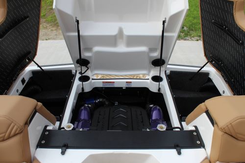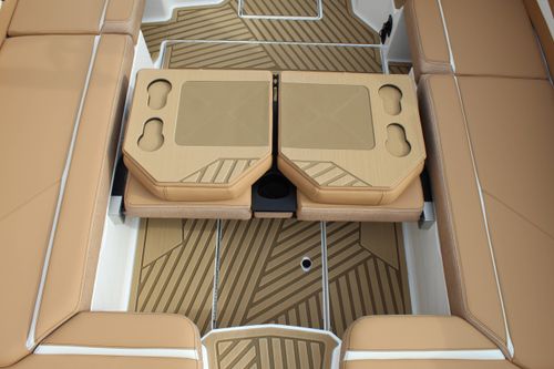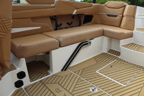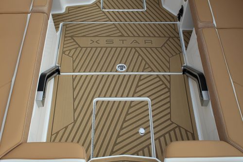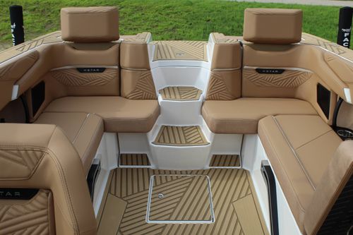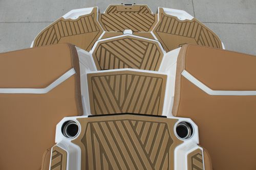 Quilted SeaDek flooring offering comfort and under-seat storage for convenience