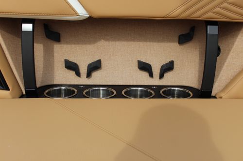 Top-of-the-line MAAX Audio System featuring 10 interior speakers, 6 subwoofers, 4 tower speakers, and 6 transom speakers