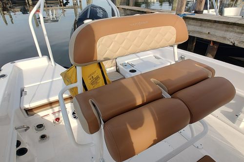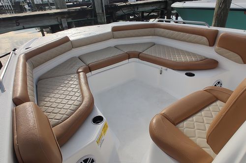 The console on the 231 Hybrid is fitted out with rocket launchers and rod holders, and an enclosed head compartment comes standard. Two aerated live wells, insulated fish boxes, onboard coolers, and rod lockers are just a few other notable features. The 231 Hybrid offers deluxe comfort with seating for ten. A wrap-around deck contoured with flip-out bolsters makes cruising relaxing. Even better, a Mercury 200XL outboard will get you to the sweet spot quickly. Opt for the Sport Package and add a swim platform, bimini top, and Fusion stereo system. Now you’ve got real a crowd pleaser. In the 231 Hybrid, memories will last forever.