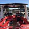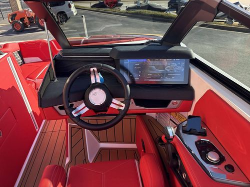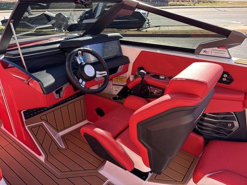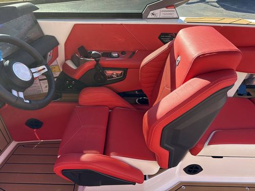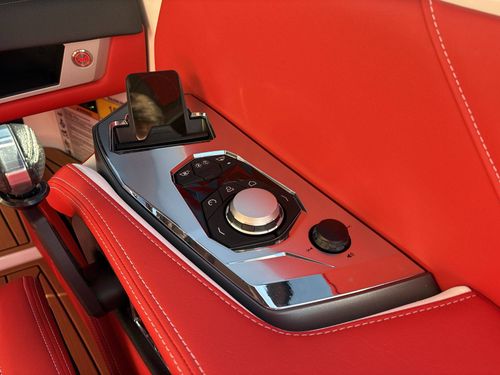 This high-tech vessel includes an air pump inflator system, supplemental ballast (additional 1,200 lbs), a Heater with defroster, platform access ladder, enhanced courtesy lighting package, underwater lights, and Nautique integrated steering assist, to mention a few. Additionally, you’ll find wireless chargers in magnetic pockets and the glove box for your convenience.