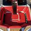The interior's primary color is VICTORY RED. The interior main stripe color and the interior accent color are finished in SOFTMAX MYSTIC WHITE. Interior seat boxing color, and the Non-Skid color are also in MYSTIC WHITE and MOCHA BROWN respectively.