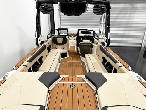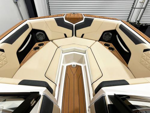 Providing massive interior space for friends, family and gear, the GS24 is the largest multi-sport towboat in the Nautique line. At 24-feet, this beautifully appointed waterski, wakesurf and wakeboard boat can outperform any other multi-sport boat in its class, delivering incredible performance at the touch of a button. Want to please anyone who comes aboard? The GS24 can do just that with its 2,500 pounds of integrated internal ballast, Ski Assist feature and h