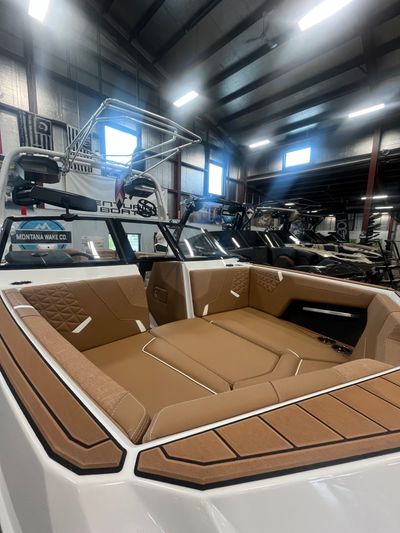 Powered by the latest PCM engine technology, this 24-foot powerhouse offers precision handling, customizable wave and wake shaping with Nautique’s Surf System (NSS), and plenty of storage for all your gear. Plush seating, premium JL Audio sound, and refined fit-and-finish make every outing feel like first class.