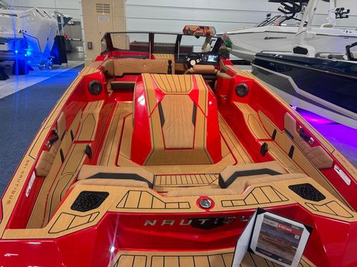 2026 Nautique Ski (Closed Bow) – Powered by a PCM ZZ6 450hp 6.2L direct-injection engine, this tournament-level ski boat delivers smooth, precise performance and legendary Nautique pull. The Nautique Configurable Running Surface with Hydro-Gate and MicroTuners provides customizable wakes for all skill levels, from slalom training to open-water fun. The interior features heated driver and loveseat seats, Mojave Brown Lux Touch upholstery, and a Victory Red deck with Jet Black Trueweave accents for a premium, performance-driven aesthetic. Convenience features include an awareness camera, trick ballast, Phender Pro quick-connect fenders, heater with defroster, and a Bimini top for shade. With a JL Audio M3 Series stereo, tandem-axle Boatmate trailer, and attention to every detail, this Ski Nautique combines world-class craftsmanship with iconic waterski precision. Call or visit us today to make it yours!