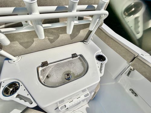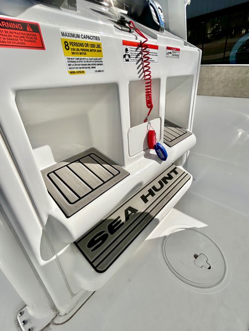 In addition to the standard features, the Sea Hunt Ultra 245 also includes custom options like a deluxe leaning post, multiple live wells for bait and catch, a hardtop with built-in speakers and LED lighting for ambiance, and more to enhance your boating experience.