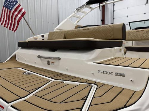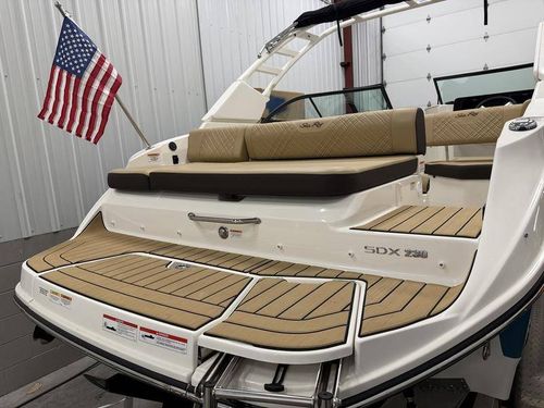The helm features advanced electronics and digital control, including a Simrad® touchscreen display and Mercury® SmartCraft® Digital Throttle & Shift, giving you confident, responsive handling. Available with a powerful 250-hp MerCruiser® sterndrive, the SDX 230 offers spirited performance and smooth acceleration for both watersports and relaxed cruising.