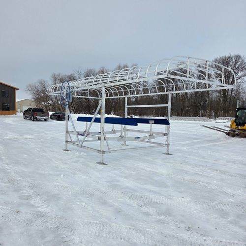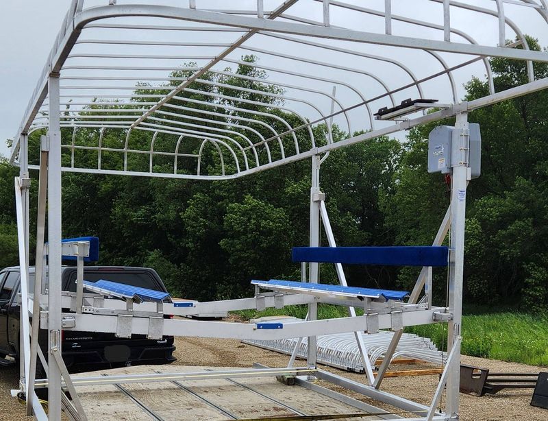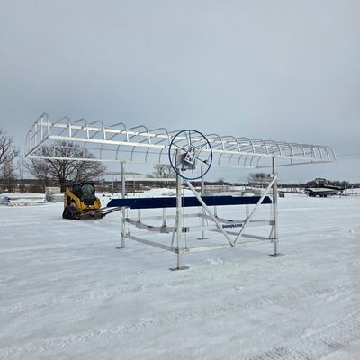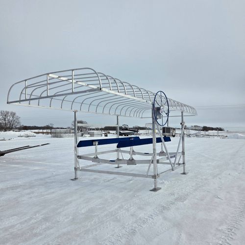 Comes complete with Pontoon Rail Kit, 26' Canopy, Harbor Time Beige Canopy Fabric, Manual Wheel Operation.