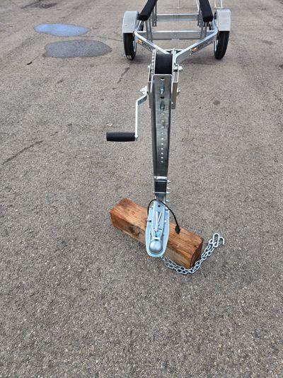 Offers a longer tongue and larger tires than the 48810. This trailer includes everything needed to carry a small boat, inflatable, or PWC up to 14' long. The multi-sport plus trailer's frame is built to carry up to an 800 lb load and includes DOT approved lights, a pair of 5' adjustable carpeted bunk boards with dual adjustable support, winch stand, winch hook and strap, and a hitch coupler with safety chains. The 4.80 x 12" tires are rated for use at highway speeds, and the winch stand can be mounted anywhere along the 86" tongue to balance the load because a properly balanced load is critical for safe trailering. Total overall length 156", overall width 54" RETAIL $2257.00