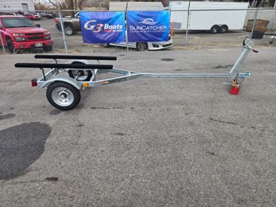 Offers a longer tongue and larger tires than the 48810. This trailer includes everything needed to carry a small boat, inflatable, or PWC up to 14' long. The multi-sport plus trailer's frame is built to carry up to an 800 lb load and includes DOT approved lights, a pair of 5' adjustable carpeted bunk boards with dual adjustable support, winch stand, winch hook and strap, and a hitch coupler with safety chains. The 4.80 x 12" tires are rated for use at highway speeds, and the winch stand can be mounted anywhere along the 86" tongue to balance the load because a properly balanced load is critical for safe trailering. Total overall length 156", overall width 54" RETAIL $2257.00