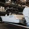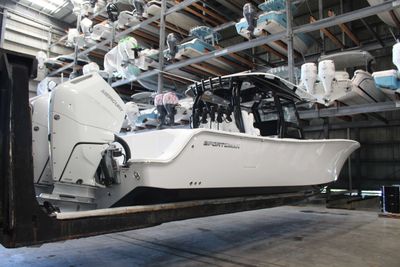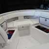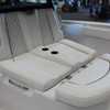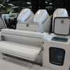 Starting at the transom, 2 30-gallon aquarium livewells with tempered glass windows, dual side entry doors, removable cockpit table, large center cooler and a large flip-up bench seat. Legendary bilge access compartment with a designed-in Seakeeper pod. Leaning post features triple captain's chairs, with table storage and rear facing seating. At the helm, a blacked-out command center with up to 2 22" Garmin displays, VHF, top of the line Garmin Fusion Signature speakers and storage. Inside the console, a berth for up to 2 adults and a child, porcelain toilet, sink and plenty of storage. Console front, a sculpted seat for 2 with a 65 qt. cooler. At the bow, wrap-around seating with electronically actuated table, under gunwale storage, comfortable deep seating with backrests and windlass foot controls.