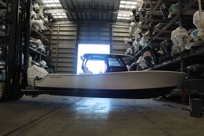- Open 352 w/ Triple Mercury AMS 400 V10 (White) Hull Side-White / Hull Bottom -Jet Black Fiberglass Console w/ FG Liner & 65 Qt Cooler Seat Fiberglass Hard Top w/ LED Lighting