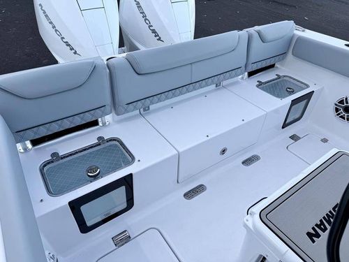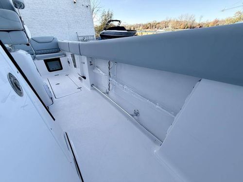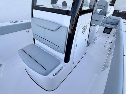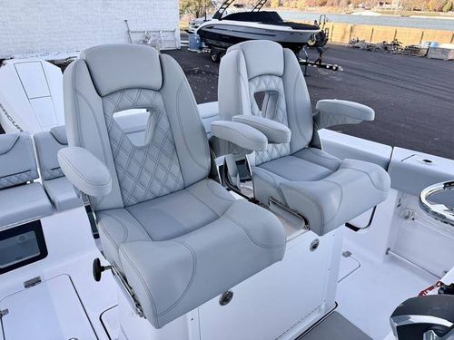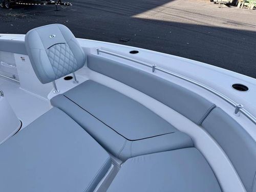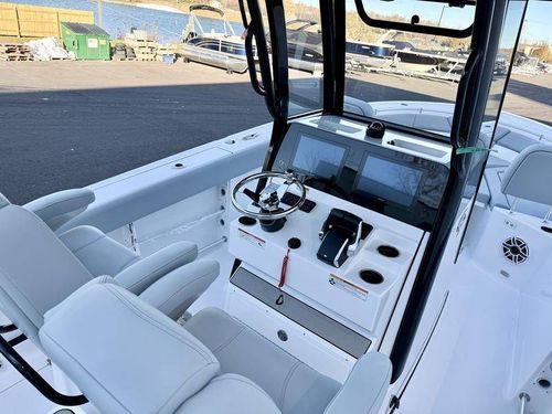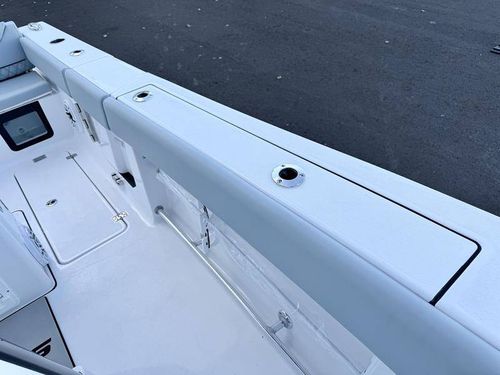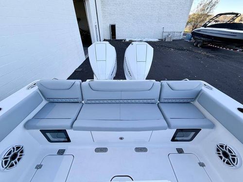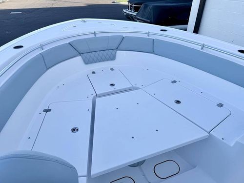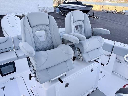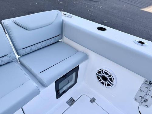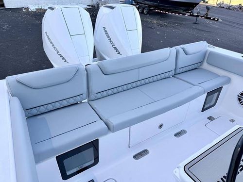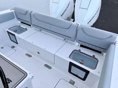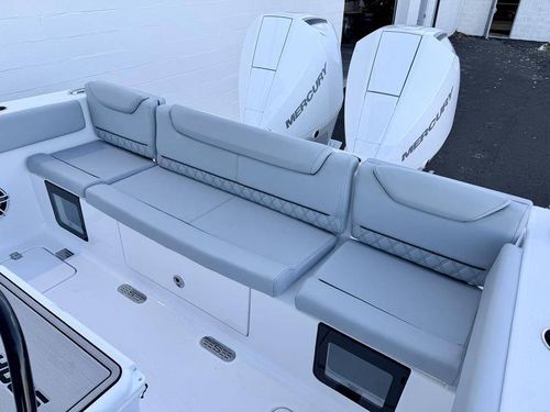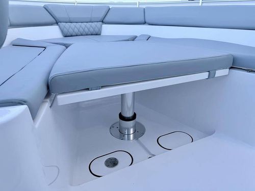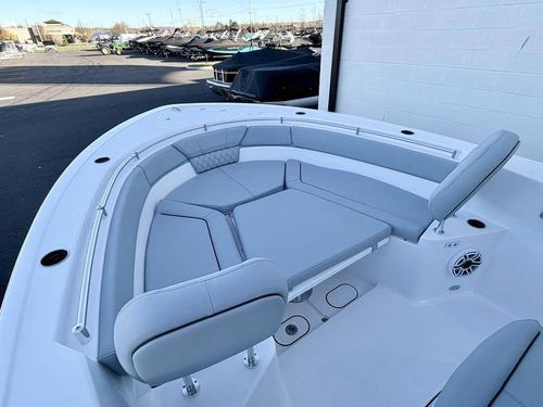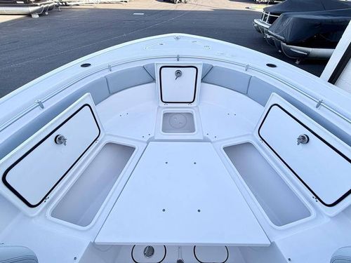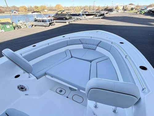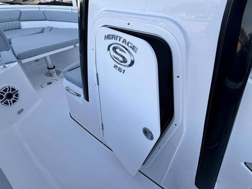The Heritage 261 defines a new class of family-focused water-centric all-fun boats. Whether you like spending time on the water, in the water or around the water, the all-new Heritage 261 has you covered. The water-centric views in sandbar mode will captivate your heart and is guaranteed to produce some incredible family memories for years to come. The layout includes deep U-Shaped seating at the bow with an electronically actuated table, edge-to-edge seating at the back for up to 5, dual side entry doors that open 180-degrees, dual transom walkthrough doors that flip to offer aft-facing seating, sandbar cooler accessible from outside the boat, dual boarding ladders, swiveling captain's chairs and so much more. Walking through the features on this boat will have you thinking "they thought of everything."