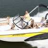 Executive Package Includes: Deluxe Furniture Package, Solid Color Hull, Black Logo and Badge Graphics, Black Rub Rail w/ Stainless Steel Insert