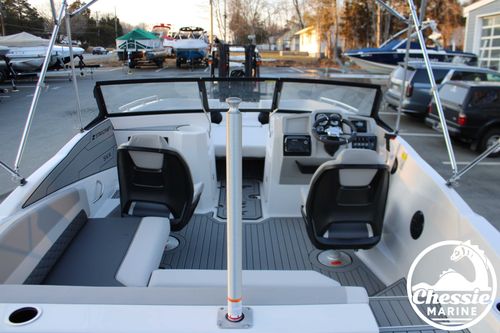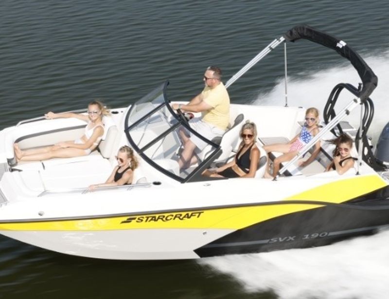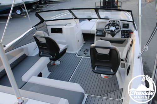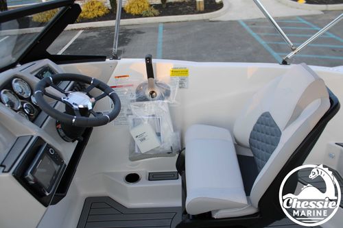 Executive Package Includes: Deluxe Furniture Package, Solid Color Hull, Black Logo and Badge Graphics, Black Rub Rail w/ Stainless Steel Insert