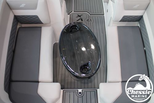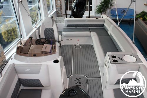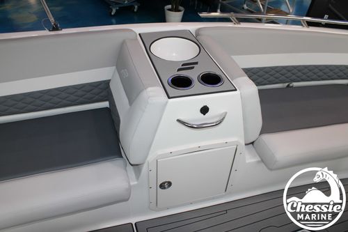 Executive Package Includes: Deluxe Furniture Package, Solid Color Hull, Black Logo and Badge Graphics, Black Rub Rail w/ Stainless Steel Insert