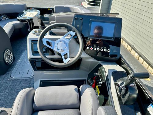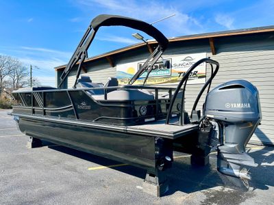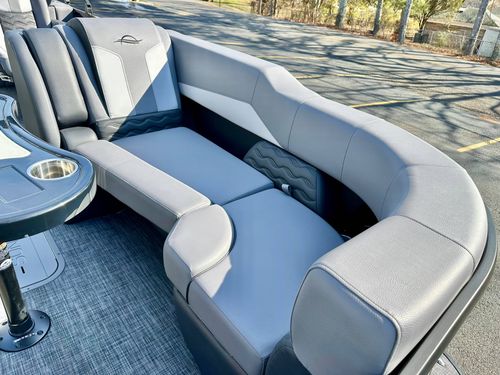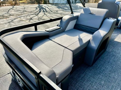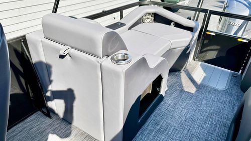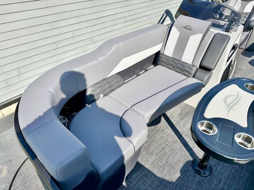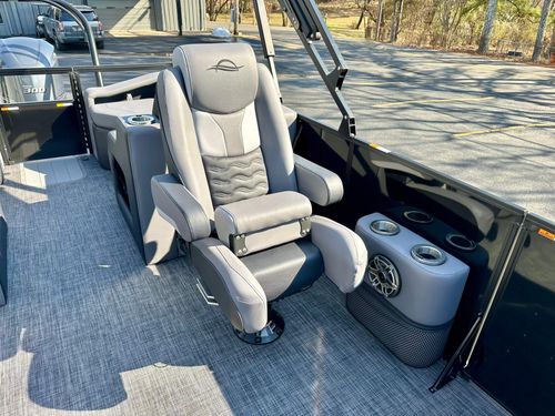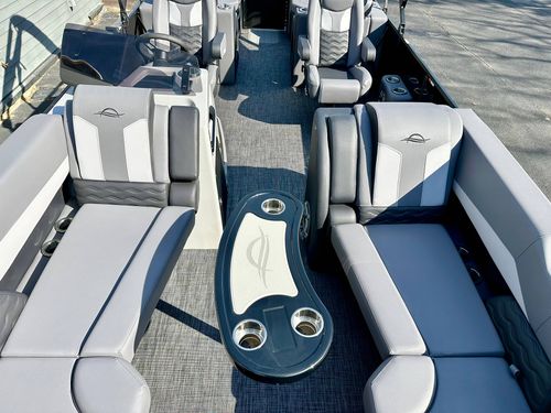 Luxuriate in the blend of power, sophistication, and unmatched performance with our elegant blacked-out triple pontoon beauty. This stellar boat is an exceptional combination of style, comfort, and functionality, making it a perfect choice for any occasion, whether it's leisure cruising, water sports, or a delightful family gathering on water.