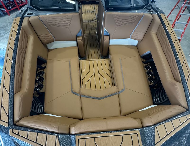 Powered by Yamaha: This exquisite watercraft is driven by a rigorous Yamaha 200 horsepower motor, ensuring a dynamic and powerful performance at all times. It offers both speed and stability and will provide you with a seamless boating experience.