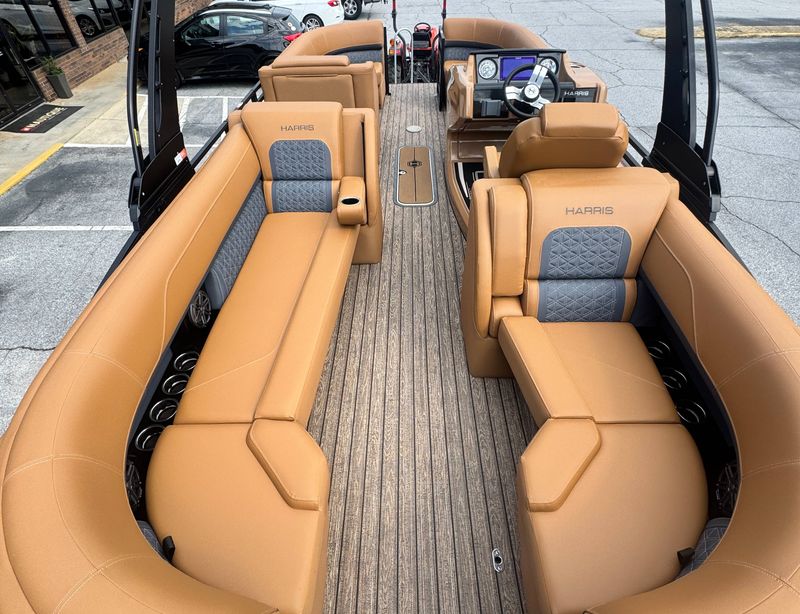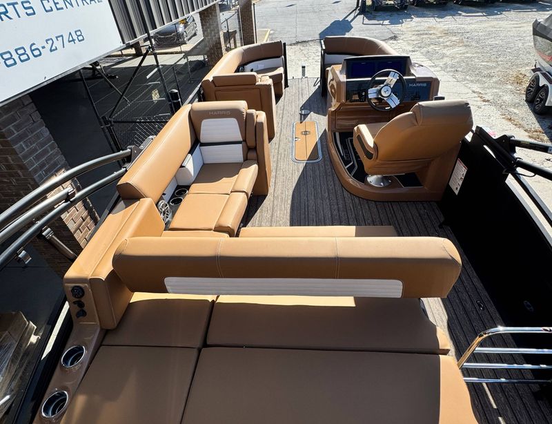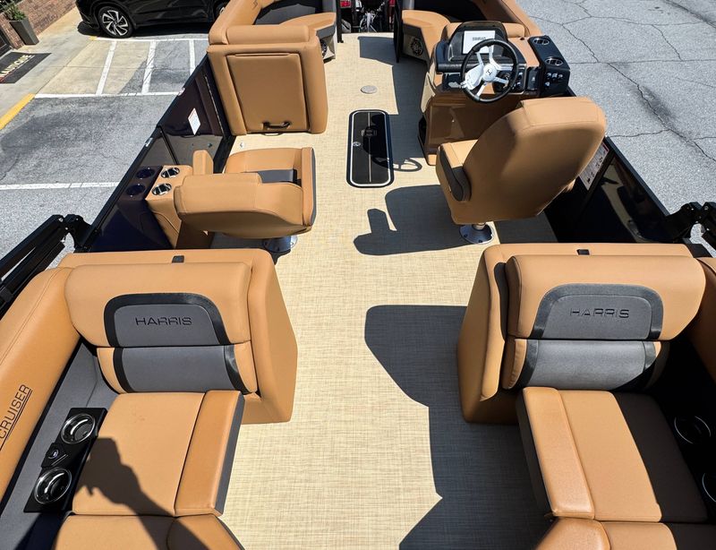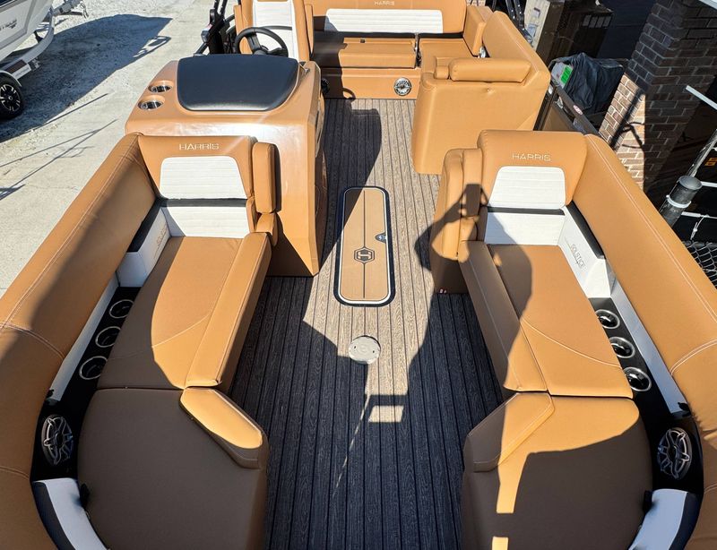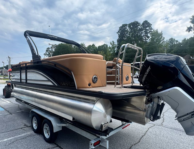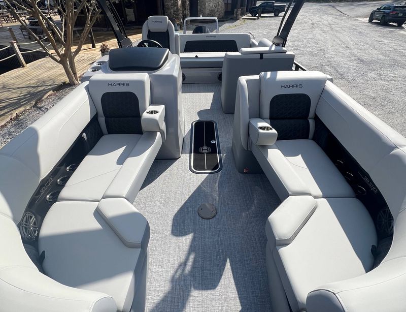 In addition to new models, our used pontoon boats inventory includes a selection of premium Harris Boats that have been carefully inspected to ensure they meet high standards of quality and durability. These pontoon boats for sale offer a more affordable entry point into the world of luxury boating while still providing the performance and sophistication Harris is known for. Each used pontoon boat comes with comprehensive history and condition reports, providing transparency and peace of mind for prospective buyers.