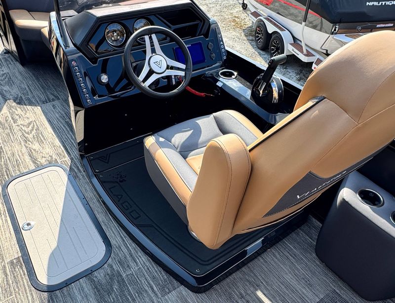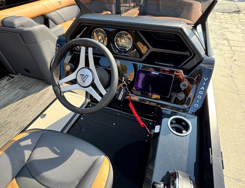 Viaggio pontoons come equipped with modern technology, including digital helm displays, integrated navigation systems, and premium sound systems. Select models offer touchscreen controls and LED lighting, enhancing both safety and the on-water experience.